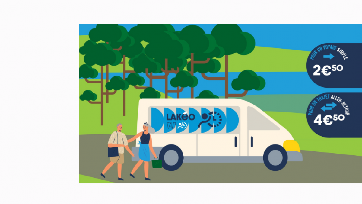 LAKÉO TAD est un service de transport à la demande mis en place par la Communauté de Communes des Grands Lacs et la Région Nouvelle-Aquitaine.